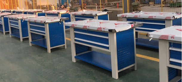 德國(guó)企業(yè)訂制不銹鋼工作臺(tái),如圖下圖的鉗工工作臺(tái),工作臺(tái)的總長(zhǎng)1.5米,工作臺(tái)底部抽屜的寬度達(dá)到1.3米多。如要舒適的抽拉抽屜,對(duì)抽屜兩邊的導(dǎo)軌質(zhì)量和間隙度要求比較高的??紤]到對(duì)方是德國(guó)企業(yè),在亞洲會(huì)有多加分廠,所以技術(shù)部門經(jīng)過(guò)仔細(xì)研究。還是做出讓客戶滿意的車間工作臺(tái)。